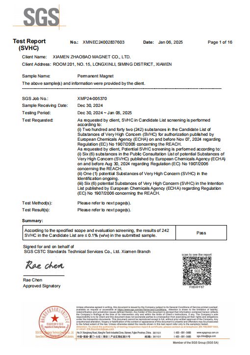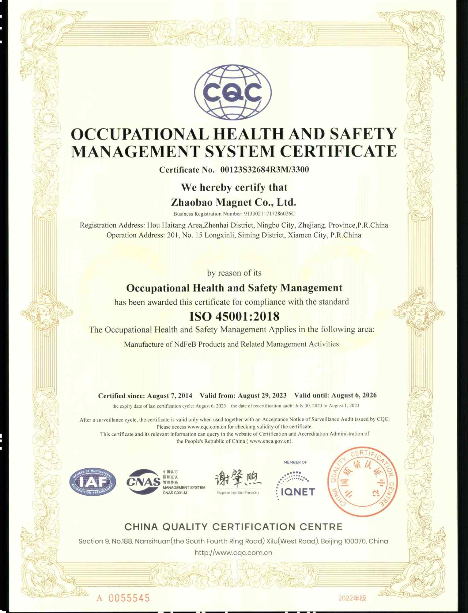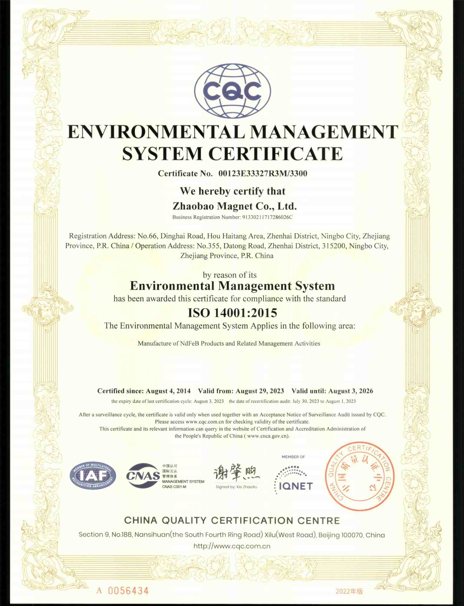 I nostri prodotti con magneti al neodimio sono pienamente conformi agli standard internazionali, certificati da IATF16949 (industria automobilistica), ISO9001 (gestione della qualità), ISO14001 (gestione ambientale), ROHS, REACH, CE, CPC, EN71, ASTM e CHCC. Queste certificazioni confermano che i nostri magneti al neodimio soddisfano severi criteri di sicurezza, ambientali e prestazionali, rendendoli adatti all'esportazione in Europa, Nord America e Sud-Est asiatico senza barriere normative.